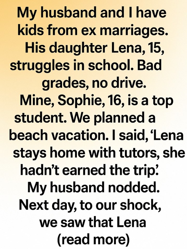 My husband and I each have children from previous marriages. His daughter, Lena, is 15 — struggling in school, barely passing, always distracted.